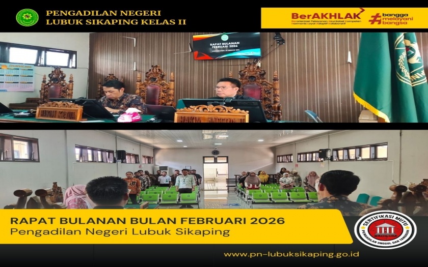 Rapat Bulanan Februari 2026 pada Pengadilan Negeri Lubuk Sikaping, telah dilaksanakan di ruang Sidan...